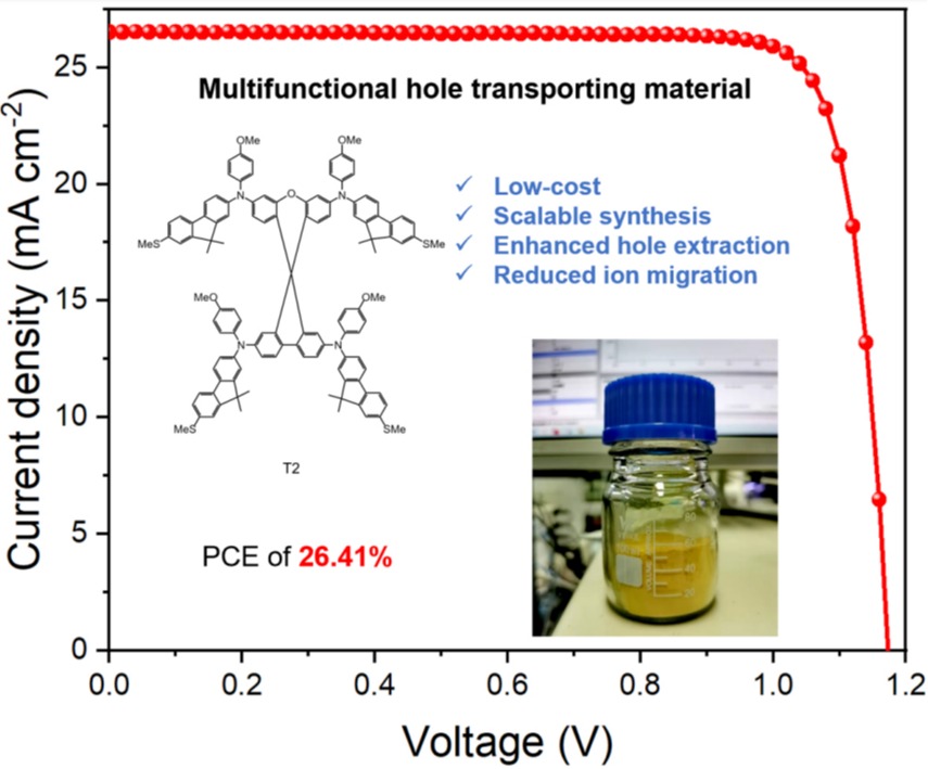 虎牙直播 新型电力系统研究中心、电机系易陈谊研究员团队通过开发新的空穴传输材料结合真空蒸镀钙钛矿薄膜实现了26.41%的钙钛矿太阳能电池世界最高效率纪录。在光伏技术领域,钙钛矿太阳能电池(PSCs)以其突出的能量转换效率(PCE)和低成本而受到广泛关注。空穴传输材料(HTM)对于PSCs的光电性能和长期稳定性至关重要,其主要作用是提取光生空穴并阻止电子回传,从而抑制电荷复合,同时还可以作为中间层阻挡金属....