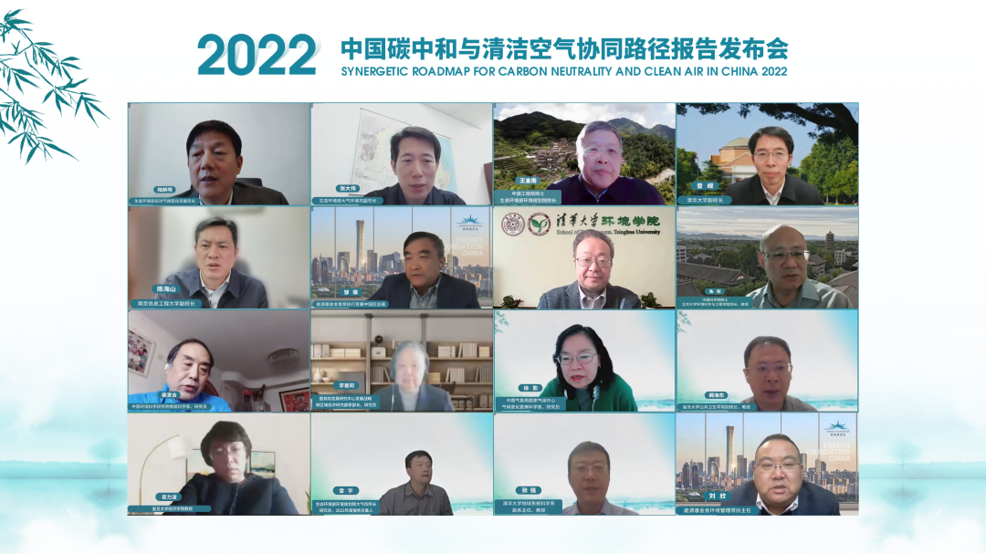 地球系统科学系、南京信息工程大学大气科学学院、中国清洁空气政策伙伴关系共同发起,在能源基金会支持下,国内50余位一线学者共同编制的《中国碳中和与清洁空气协同路径(2022)》报告顺利完成线上发布。