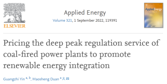 能源环境经济研究所研究人员在Applied Energy发表文章,提出了基于价值分配进行结算的煤电机组深度调峰定价方案。