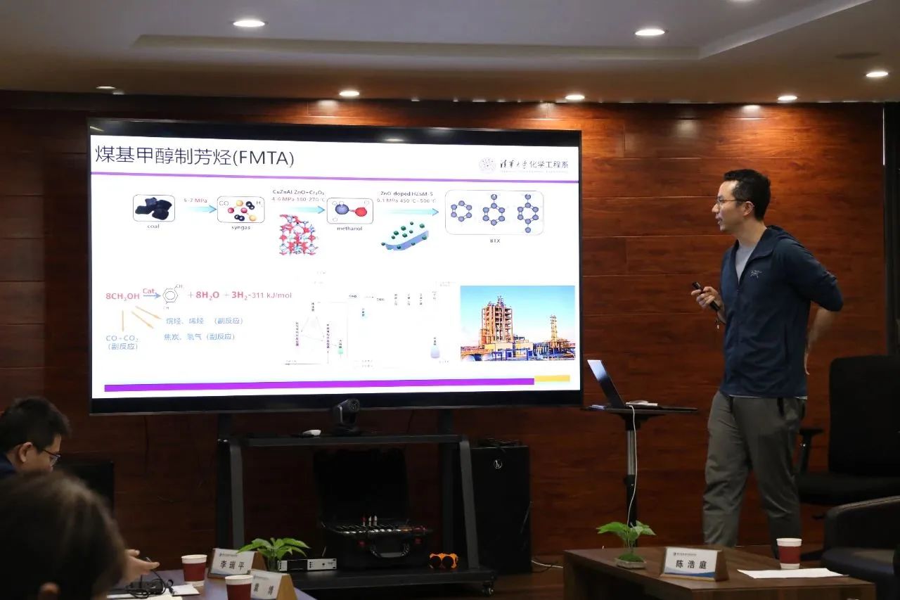 座谈会上,张晨曦对二氧化碳加氢制绿色芳烃项目研究进展、中试建设、研究成果及经费使用情况作了汇报。同时,各与会企业、专家结合产业链现状及项目研究内容,针对项目应用与推广提出了宝贵的意见和建议。该项目对改变我国长期依赖进口芳烃的现状及解决煤化工过程碳排放的消纳和转化问题具有重要意义。