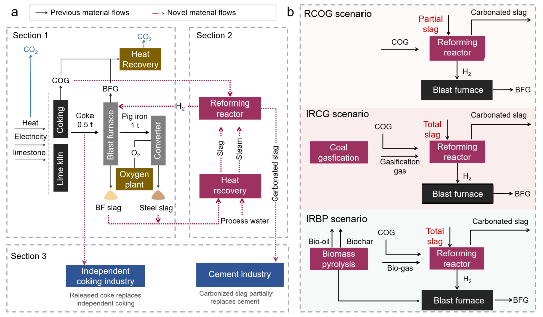 该研究构建了“尾气-熔渣协同循环体系”并提出了分阶段脱碳技术路线图,量化评估了煤基产业内源能质循环的深度减碳潜力,为高碳工业低碳转型与循环经济发展提供了借鉴。