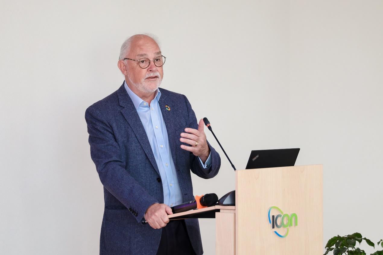 英国皇家工程院院士、英国伦敦大学学院建筑环境数字创新研究所所长Tim Broyd教授作“数字化转型与大型项目”的报告。建筑行业的脱碳是实现碳达峰碳中和目标的重要一环, Broyd教授介绍了BIM建筑信息模型,并讲述了模型在建筑领域中的实际应用。