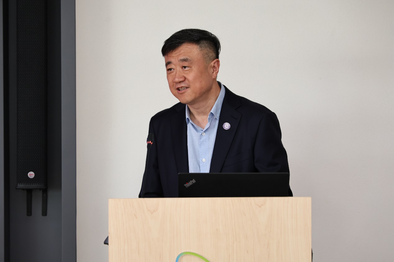 院长贺克斌教授作“碳中和背景下可再生能源倍增式发展的挑战与系统方案”的报告。他强调了当下全球碳中和的趋势和面临的挑战,指出可再生能源在未来碳中和进程中的地位,提出了区域风电互补、区域光伏互补、交通融合以及建筑融合等系统性的解决方案。