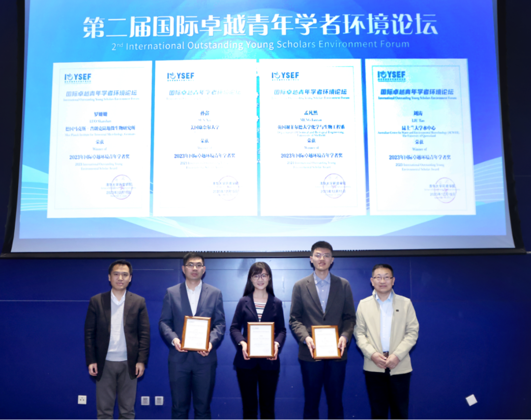本次论坛首次设置“国际卓越环境青年学者奖(International Outstanding Young Environmental scholar Award)”,对在全球生态环境领域深耕的青年科技人才给予更多的肯定和关注。来自德国马克斯•普朗克陆地微生物研究所的罗姗姗、美国康奈尔大学的孙鑫、英国谢菲尔德大学的孟凡然、澳大利亚昆士兰大学的刘涛四位青年科技人才获奖。