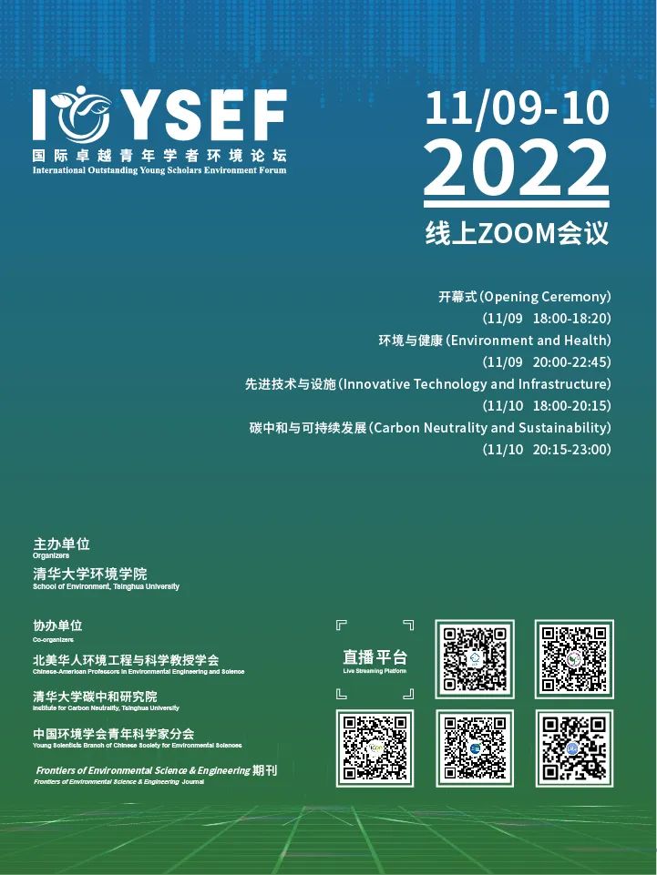 、中国环境科学学会青年科学家分会、Frontiers of Environmental Science & Engineering期刊共同协办的2022国际卓越青年学者环境论坛将于2022年11月9日—11月10日在线上召开,论坛将邀请全球环境领域顶尖专家、知名学者和卓越青年人才参会,荟萃学术精英、探索前沿热点、激励多元思维,促进环境领域交叉协作和学科可持续发展。