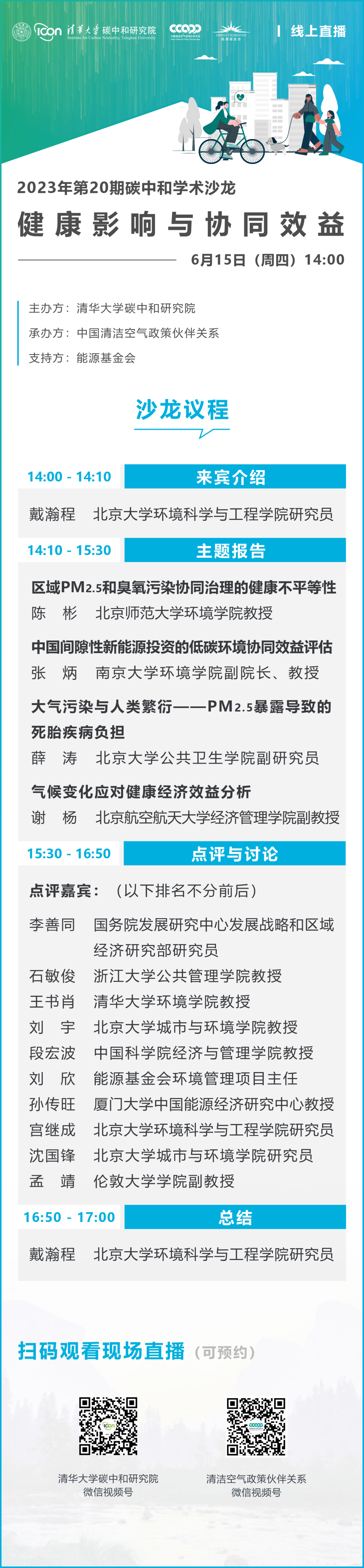 2023年第20期碳中和学术沙龙 “健康影响与协同效益”