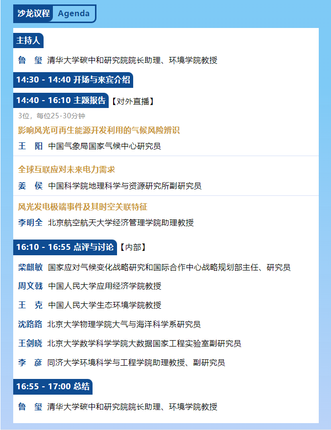兹定于2025年8月4日14:30举办“气候变化与能源系统绿色低碳转型”学术沙龙,聚焦气候变化背景下能源系统转型进程中存在的关键发展问题并展开深入探讨,为有序推进能源结构持续优化与降碳减污协同治理提供系统性指南,为中国“双碳”背景下能源系统的清洁低碳和可持续发展提供专业见解。