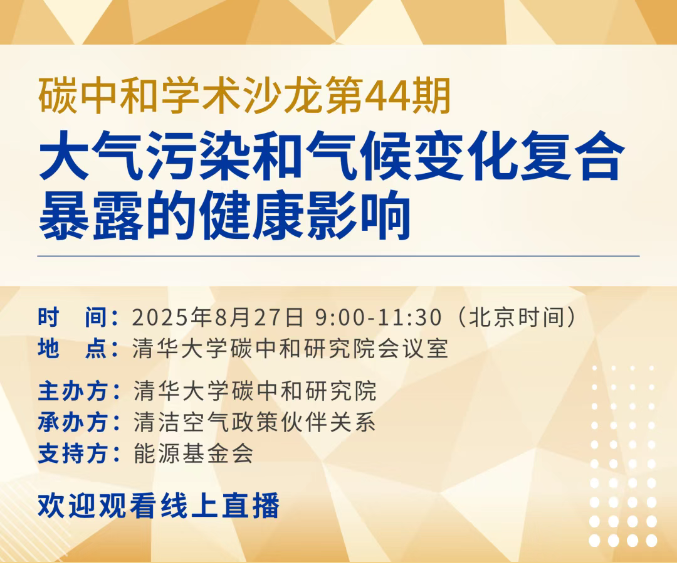 当下,我国虽在大气污染治理方面取得瞩目成就,空气质量显著提升,但仍未完全达标,对人群健康构成潜在威胁。尤其在人口老龄化趋势日益显著的背景下,空气污染对健康的危害愈发凸显,全球范围内空气污染已成为仅次于吸烟的第二大死亡风险因素。此外,人为气候变化致使高温热浪、干旱、极端降水等极端天气事件频发,进一步加剧健康风险。研究证实,极端高温与大气污染的交互作用会大幅提高人群死亡率和发病率。兹定于2025年8月27日(周三)上午在北京举办2025年第44期碳中和学术沙龙——大气污染和气候变化复合暴露的健康影响,以健康为抓手,探索减污降碳协同增效有效路径,促进协同效益最大化。