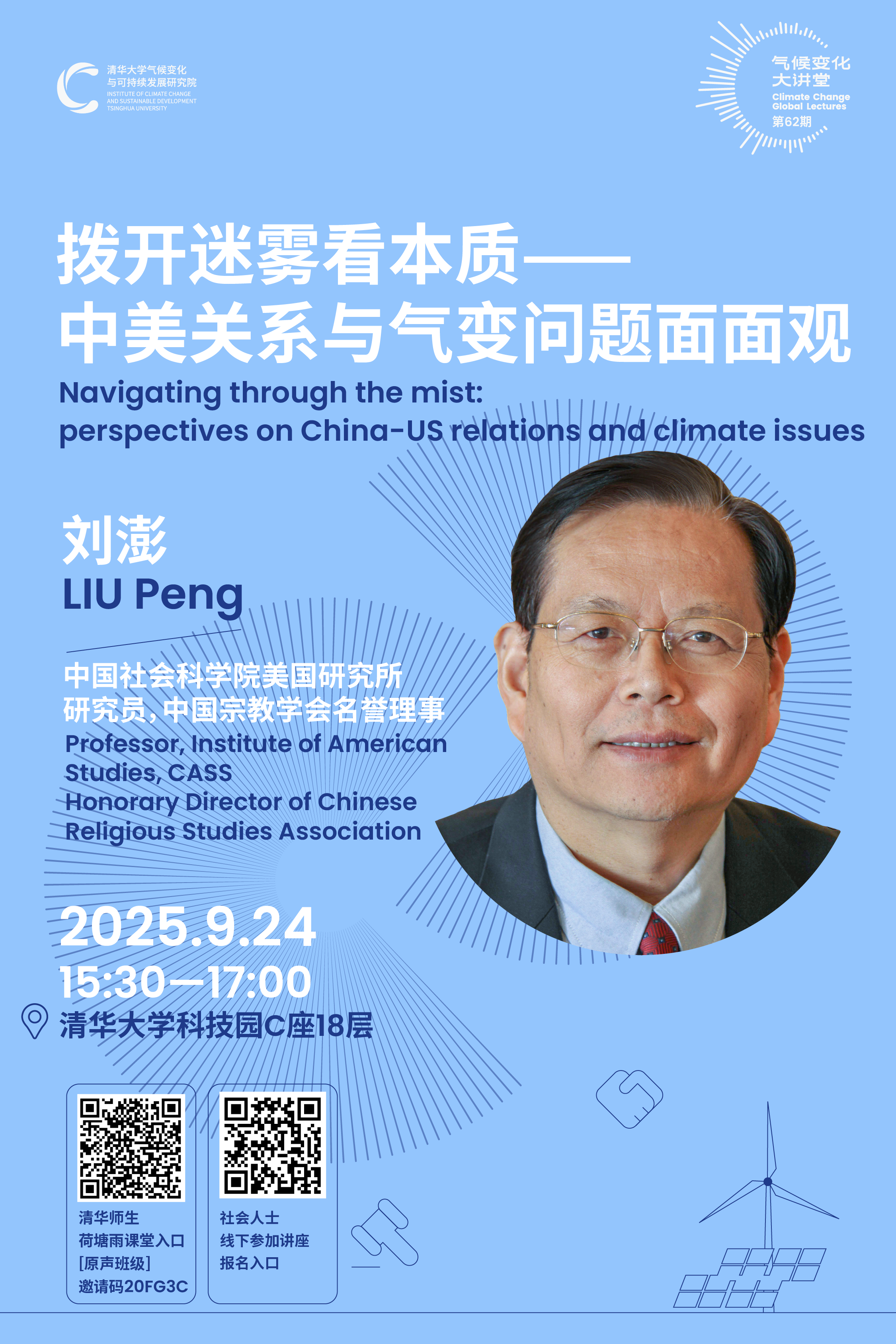 中美关系虽面临竞争挑战,但气候合作已成为双方确认的“稳定器”与“突破口”。两国作为温室气体排放大国,在应对气候变化方面肩负着重要责任。两国元首在6月5日通话中为中美关系的发展校准了方向,注入了新的活力,也为世界和平与繁荣带来了积极信号。两国就气候变化合作达成共识,将为全球气候治理注入新的动力。这不仅有利于两国,也有利于全人类的未来。中国主张将合作愿景转化为地方行动,反对将气候议题工具化、政治化,强调全球气候治理应回归科学与务实轨道,呼吁中美将气候合作愿景转化为地方实际行动 ,共同为全球气候治理贡献力量。本期大讲堂邀请中国社会科学院美国研究所研究员刘澎,围绕中美关系与气变问题发表主题演讲。