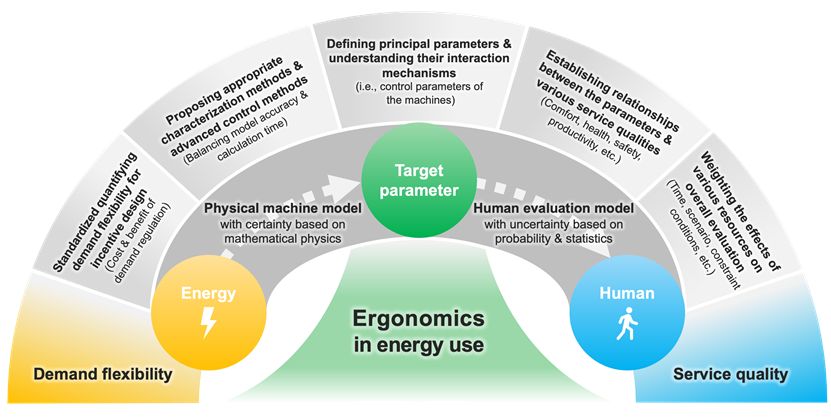 建筑学院刘晓华教授课题组创新性地将人因工程相关理论与方法引入能源系统需求侧柔性资源的研究,提出了“能源使用人因工程学”框架。从“以能源系统为中心”视角转向“人-能源系统双向互动”视角,该框架旨在建立能源系统调节需求与终端用户服务质量之间的量化关系,将“柔性”从工程学概念拓展到工程社会学概念,为构建“以人为本”的新型能源体系提供新思路。